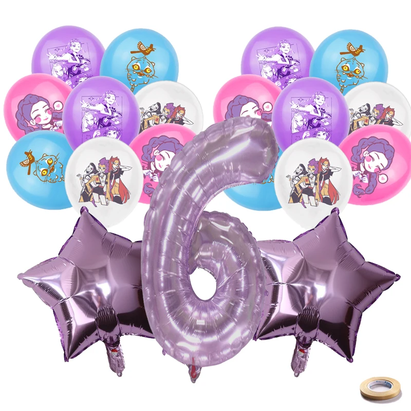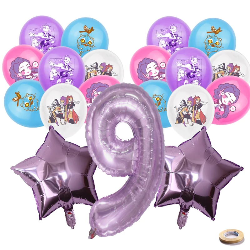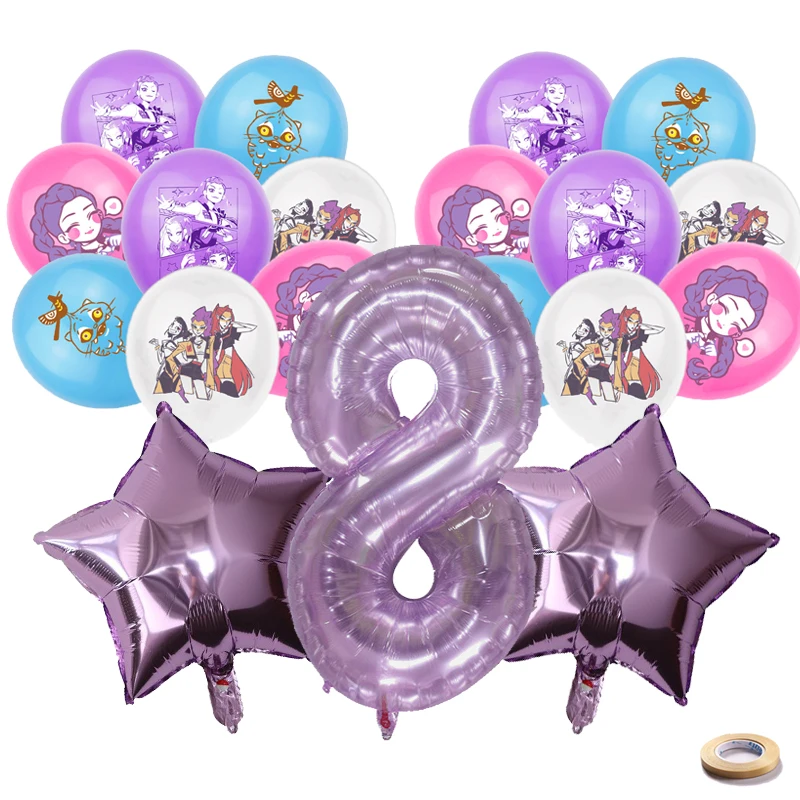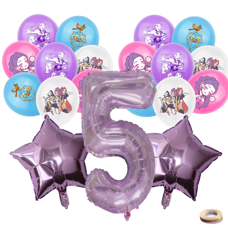 19pc Kpop Demon Hunters Birthday Balloon Decoration Set Music Girl Number Aluminum Ballons Kids Party Supplies Gift Favor Decor