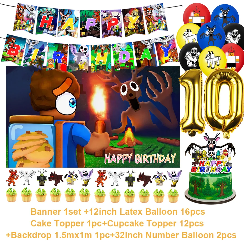 99 Nights In The Forest Theme Kids Birthday Party Decorations Cartoon Game Backdrop Number Balloons Cake Topper Party Supplies