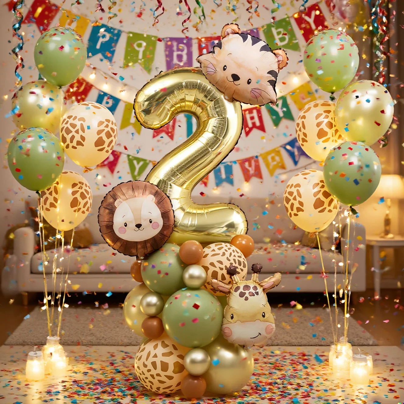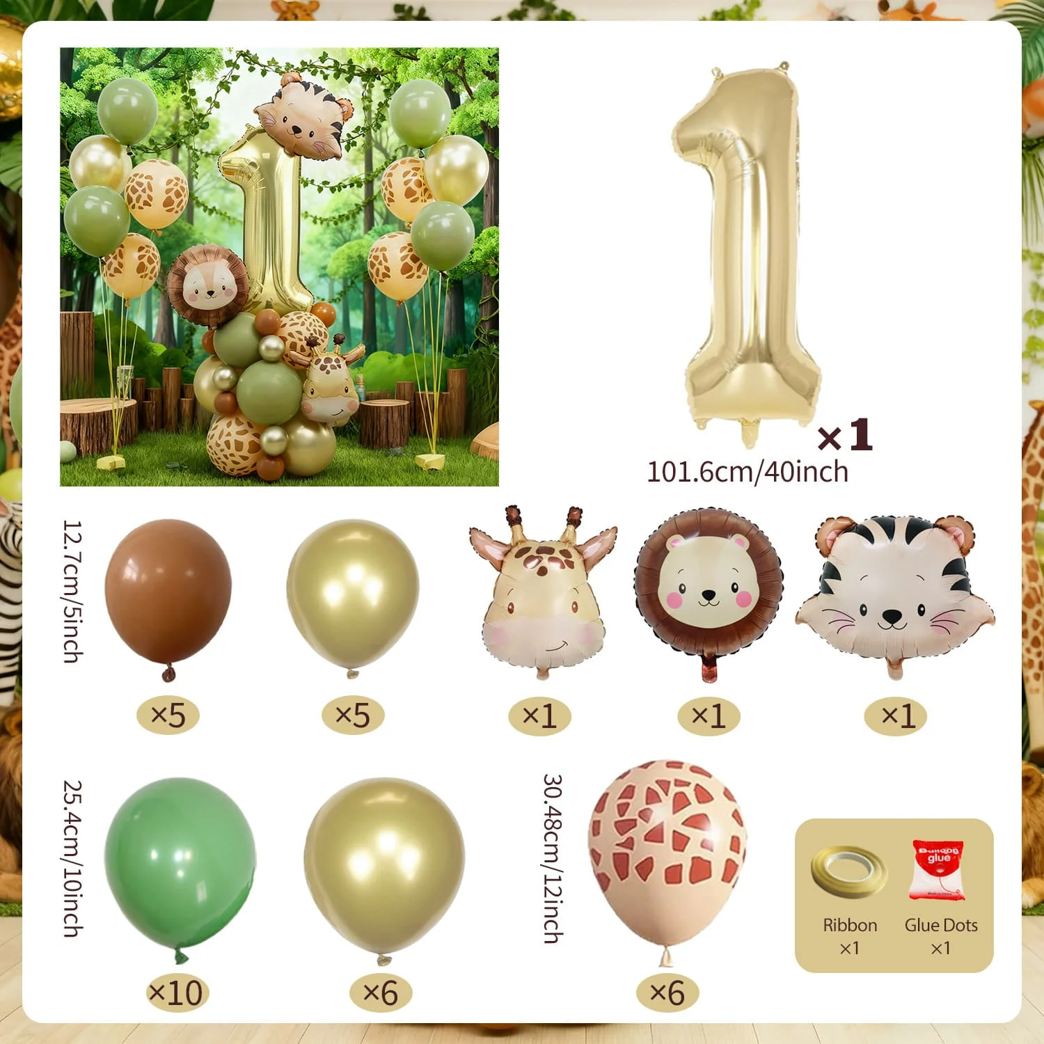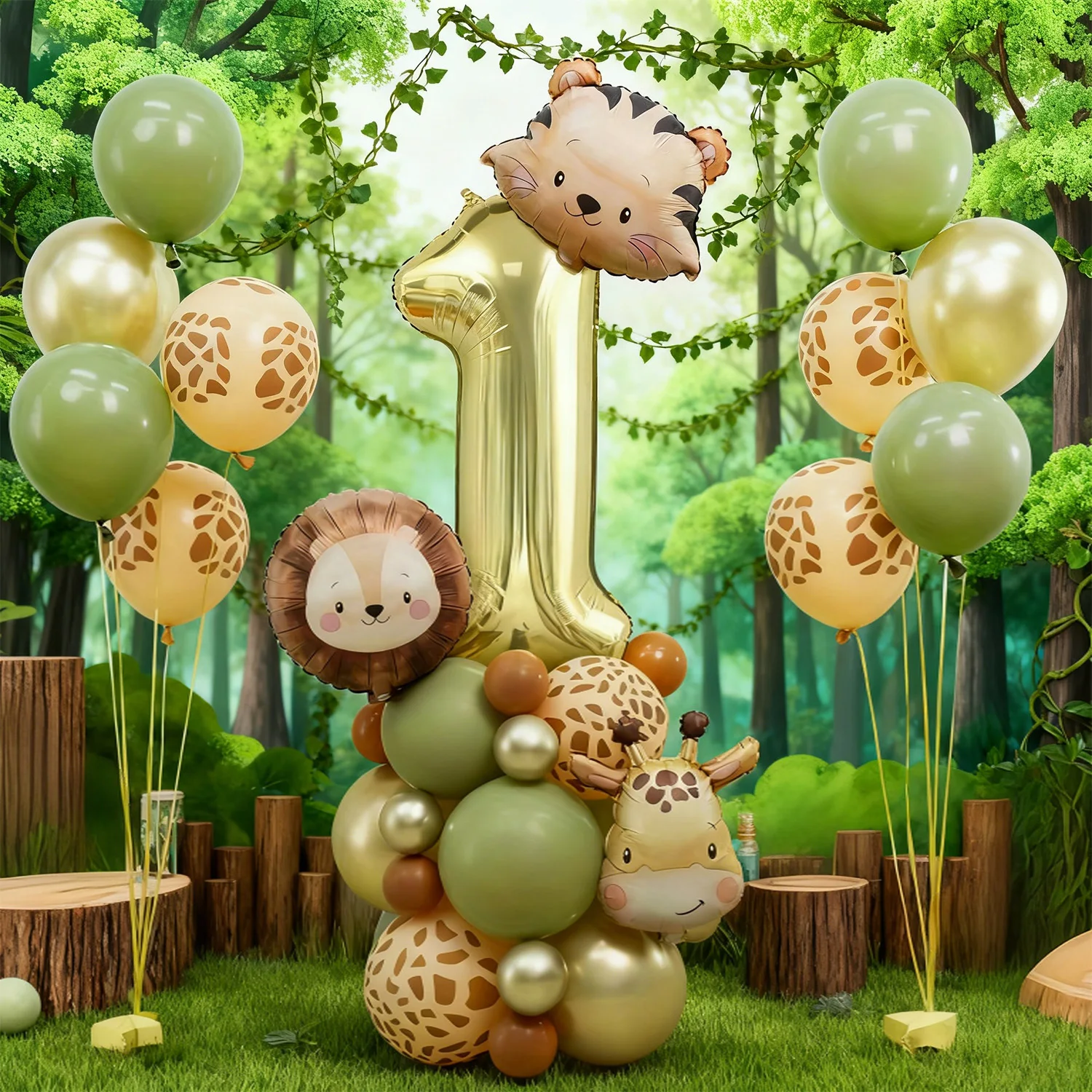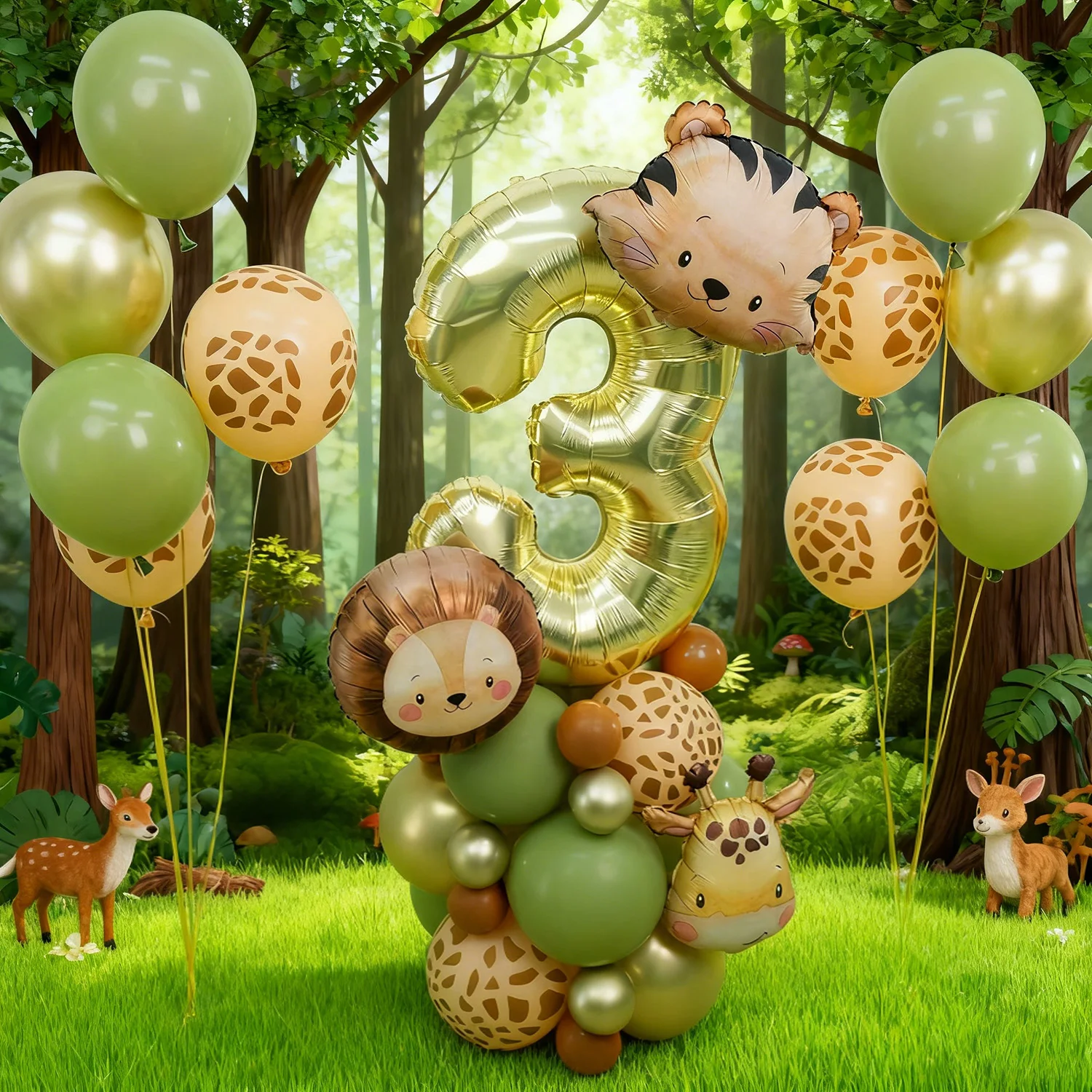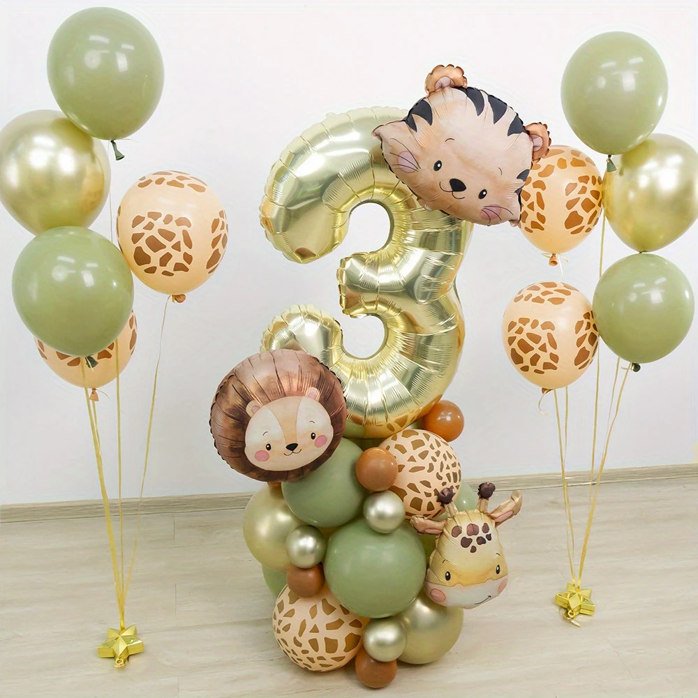 Cute Animal Head Balloon Set Tiger Lion Giraffe Balloon, 32 inch Digital Balloon 0-9 for Jungle themed Birthday Party Decoration