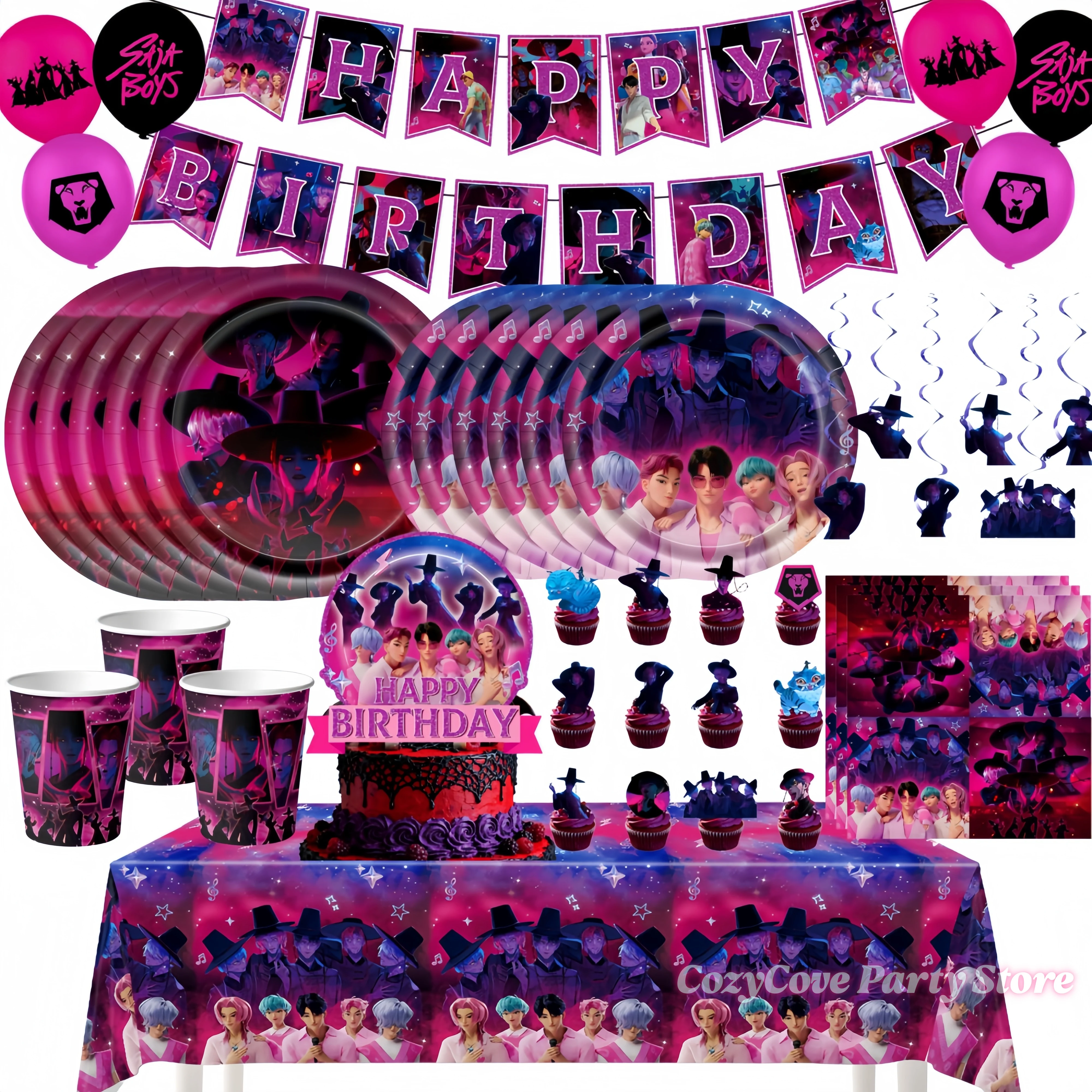 Idol Saja Boys Birthday Party Decoration Tableware Cup Plate Balloons Tablecloth for Kids Party Favors Supplies Photo Booth